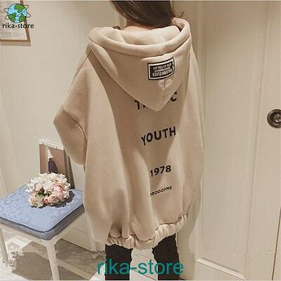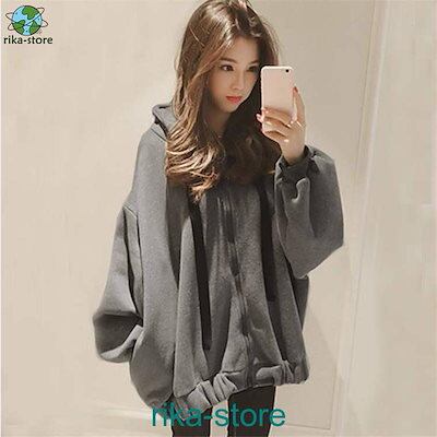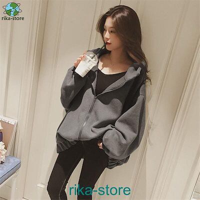 パーカー レディース 韓国 シンプル 裏起毛 秋冬 フード付き チュニック ロング 前開き ゆったり ジップアップ アウター 羽織り 長袖 カジュアル
