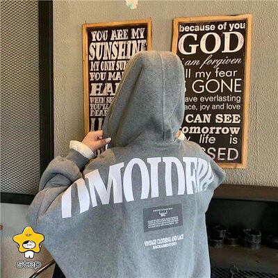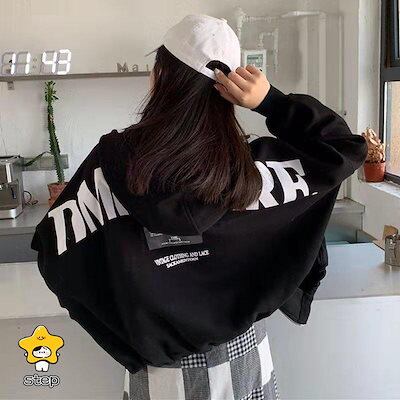 パーカー レディース 韓国ファッション ストリート系 原宿 裏起毛 長袖 ロゴ 安い ビッグ 大きいサイズ 冬 10代 20代 30代 着痩せ 大人 学生