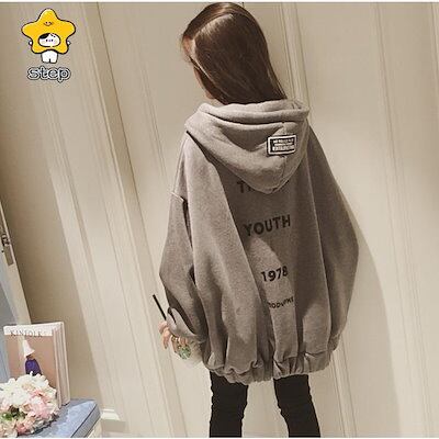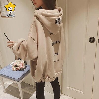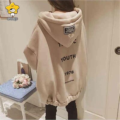 パーカー レディース 冬 大きめ トップス 裏起毛 ビッグシルエット フーディー ロゴ カジュアル