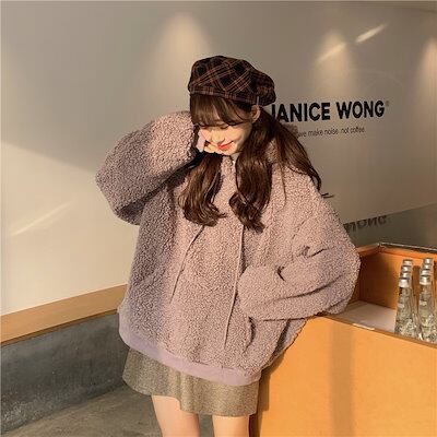 パーカー 可愛い お洒落 ふわふわ パーカー レディース 冬百掛け長袖スウェットフェイクラムズフリース 暖かい トップス 秋冬服トレーナー 学生
