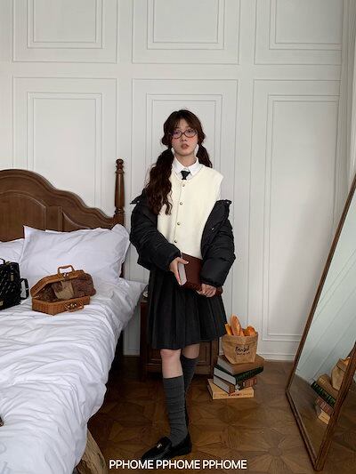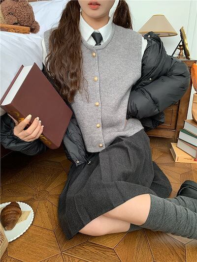 2024秋冬 柄 Vネック 甘め ニットベスト トップス ミニ丈 ショートセーター カーディガンレディースファッション系 jk 秋冬 黑白グレー 春 学生 高生 フレンチ