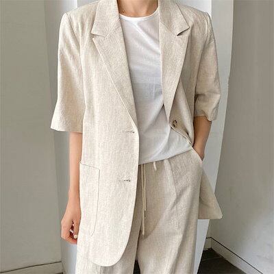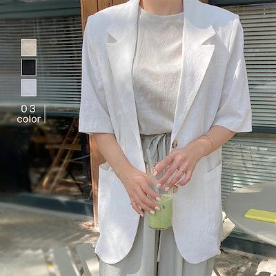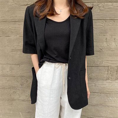 テーラードジャケット 半袖 レディース テーラード 5分袖 ライトアウター ジャケット 重ね着 カジュアル フォーマル スーツ カジュアル 夏 トップス オフィス 通勤 OL ビジネス 薄手 羽織 は