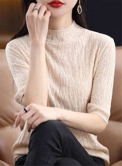 ニット セーター 秋 レディース 5分袖 フォーマル ニットトップス ニットtシャツ プルオーバー ハイネック ニット トップス 体型カバー シンプル 春秋 秋冬 上品 着回し きれいめ スーツ イン