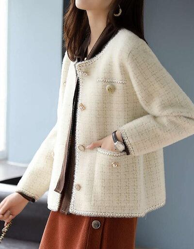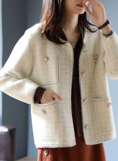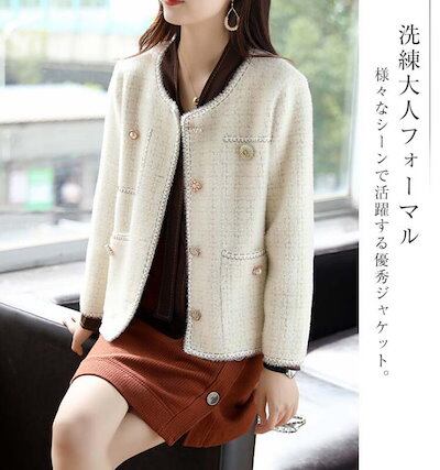 テーラード スーツジャケット レディース ニットカーディガン カーディガン ジャケット 秋 ツイード フォーマル きれいめ ツイードジャケット
