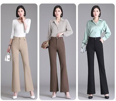 【TIME HOLDER】レディースフォーマルパンツ ビジネス ベルボトム ラッパ レディーススーツパンツ 夏ロング丈ズボン 無地 シンプル ボトムス ストレッチ カジュアル 美脚 スキニー