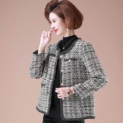 セレモニー お宮参り 春 レディース オフィス 結婚式 入学式 卒業式 ママスーツ ノーカラージャケット ツイード カジュアル 母親 服装 通勤 ブラック フォーマル 秋冬 アウター 30代 40代