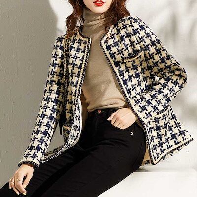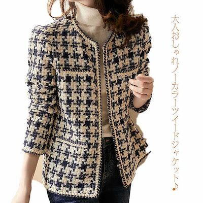 ツイードジャケット レディース オフィス スーツ フォーマル ジャケット 長袖 ノーカラー 上品 入学式 卒業式 入園式 卒園式 アウター 春 秋 冬 ママ 七五三 ビジネス カジュアル 通勤 女性
