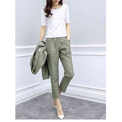 レディース ポケット付き おしゃれ フォーマルスーツ 長ズボン テーラード風 七分袖 ウエストゴム フォーマルスーツ かっこいい きれいめ