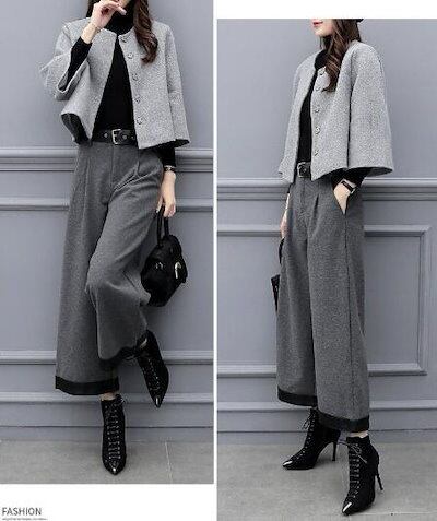 セットアップ レディース 春秋冬 40代 20代 フォーマル 長袖 2点セット アウター 春秋コート ガウチョパンツ カジュアル 大きいサイズ おしゃれ 上品 着痩せ 新品 OL オフィス