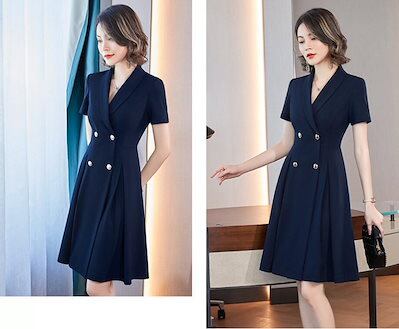 パーティードレス ビジネス 通勤ドレス スーツワンピース レディース 3色 フォーマル オフィス テーラードカラー お呼ばれ 二次会 披露宴 ダブルボタン