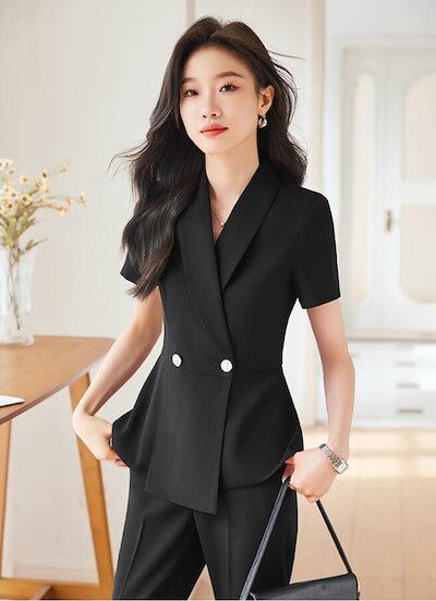 夏レディーススーツセット スカート/パンツセット 無地 20代 30代 40代 半袖 フレア裾 二つボタン フェミニン 事務服 フォーマル 制服OL ビジネス 入学式 卒業式 通勤 スーツジャケット