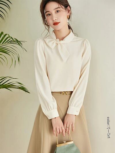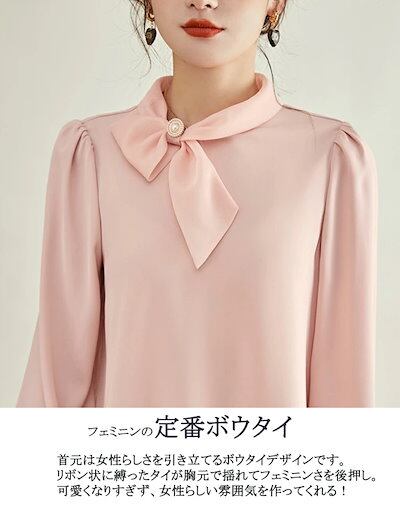 ボウタイ ブラウス 長袖 オフィス ボウタイブラウス レディース ゆったり シャツブラウス シフォン タック フォーマル スーツ インナー トップス 春 秋 長袖ブラウス ギャザー 体型カバー シャツ