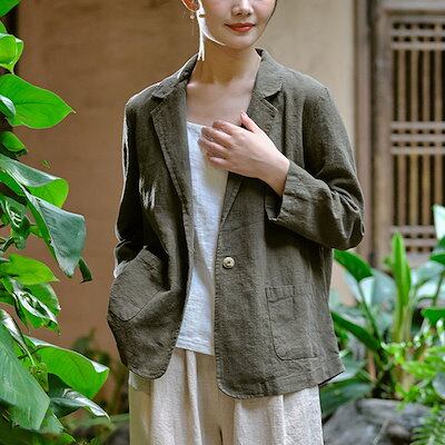 テーラードジャケット レディース 春夏 リネン 麻混 カジュアル リネンジャケット 長袖 麻 ジャケット フォーマル スーツ トップス 薄手 スーツジャケット オフィス 通勤 ビジネス 入学式 テーラ