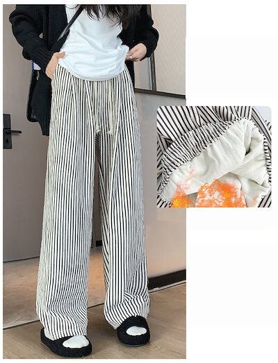 裏起毛 ワイドパンツ 大きいサイズ レディース フレアパンツ パンツ ボトムス イージーパンツ ストライプ 裏ボアパンツ ウェストゴム ハイウェスト ゆったり あたたかい カジュアル キレイめ 秋冬