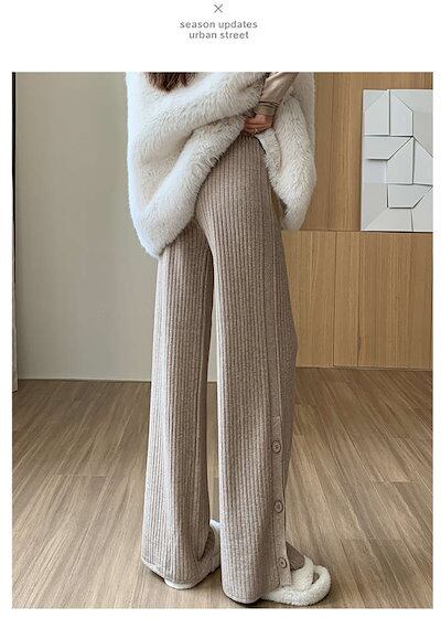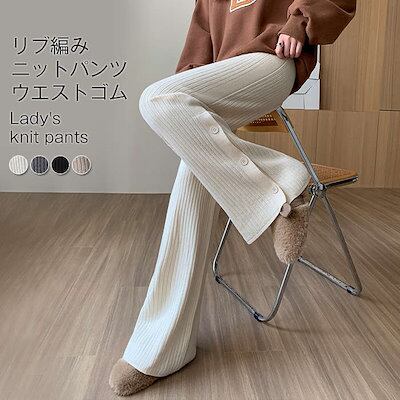 ニットパンツ レディース ボトムス パンツ ニット ワイド 秋冬 サイドスリット ガウチョ リブニット きれいめ ロングパンツ ドロスト ワイドパンツ フレアパンツ ウェストゴム ガウチョパンツ ゆっ