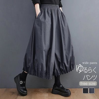 パンツ バルーンパンツ レディース ワイドパンツ きれいめ ロング ボトムス ズボン ワイドガウチョパンツ イージーパンツ 楽ちん ウエストゴム フレアパンツ カジュアル 体型カバー 体型隠し ブラッ