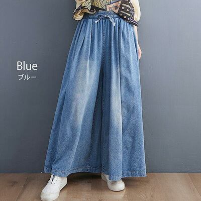 デニム ワイドパンツ レディース デニムパンツ ガウチョパンツ ボトムス ジーンズ フレア デニムワイドパンツ ロング丈 ウエストゴム かわいい 大きいサイズ 春 夏 秋 可愛い カジュアル 大人女