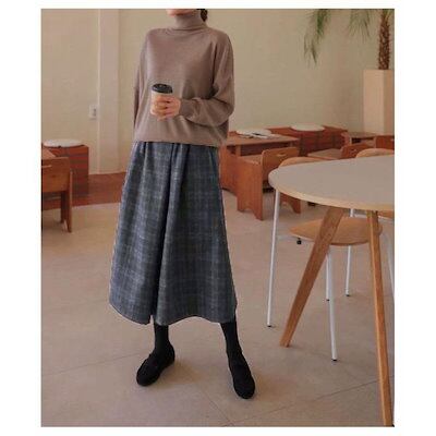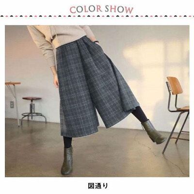 ガウチョパンツ レディース 七分丈 スカーチョ 秋冬 チェック柄 スカンツ ワイドパンツ フレアパンツ ゆったり ハイウェスト フレアパンツ ウエスト