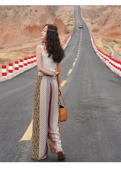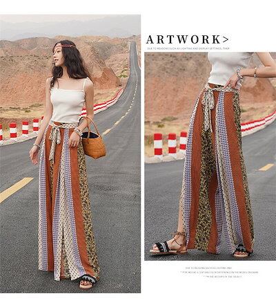エスニック風 ワイドパンツ レディース ガウチョパンツ シフォンパンツ フレアパンツ ロングパンツ ゆったり パンツ ガウチョ リラックスパンツ ボトムス おしゃれ 夏 可愛い大人 オシャレ