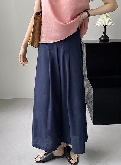 ワイドパンツ レディース パンツ コットンリネン ワイド ロング リネンパンツ ガウチョパンツ フレアパンツ ボトムス タックパンツ ゴム ウエストゴム 麻 綿 リネン ナチュラル ゆったり 大きいサ