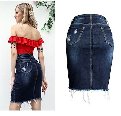 フレアスカート欧米/レディース/ホット/スリム/パッケージヒップ/デニムスカート/セクシー/ダメージデニムパンツ
