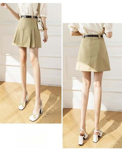 スカート レディース タック ボトムス ミニ丈 春夏 ミニスカート 無地 制服 カジュアル フレア Aライン 薄手 ハイウエスト 黒 白 ファッション かわいい ショート丈 インナーパンツ付き ミニ丈