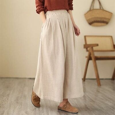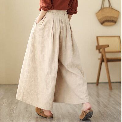 ワイドパンツ レディース きれいめ 夏 リネン パンツ 大きいサイズ 冷感 清涼感 ロングパンツ フレアパンツ ガウチョパンツ 九分丈 ロング フレア ワイド ゆったり 部屋着 ウエストゴム サイドポ