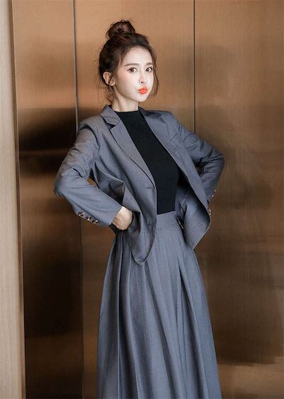 スーツ レディース セットアップ スカートスーツ 2点セット スカート プリーツスカート フレアスカート フレア テーラード ミモレ丈 膝丈 令嬢 洗える 長袖 オフィス 仕事 面接 ビジネス 通勤