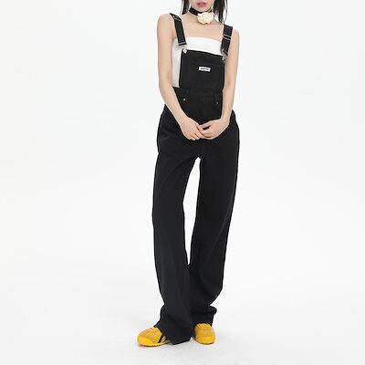 韓国 コーデ完成 サロペット オールインワン レディース ワイドデニムサロペット 2024春夏新作ゆったりストレートパンツ ワイドパンツ サロペットパンツ