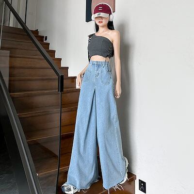 デニムパンツ ワイドパンツ レディース 港風 レトロおしゃれ 着痩せ ジーンズ ロングパンツ レディース服 デザイン感 ハイウェストゆったり 長ズボン ロングズボン ワイドパンツ