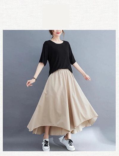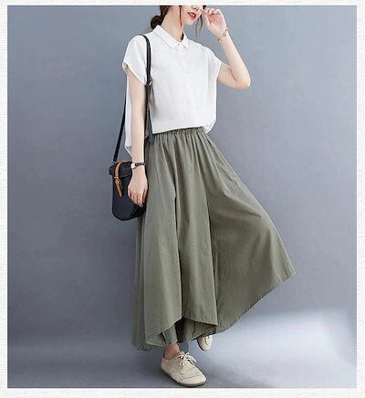 春夏 キュロットスカート 九分丈 ワイドパンツ 体型カバー ゆる 大きいサイズ 不規則裾 スラックス ゴム ハイウエスト レディース 袋付き ロングパンツ フレア メガ割
