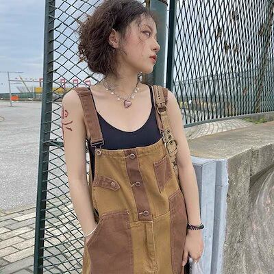 時短コーデ オーバーオール秋新作スラックスパンツコーデ完成!サロペット日系シンプルレトロオーバーオール怠惰な風ゆったりワイドパンツコーデ完成!