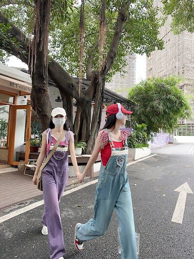 時短コーデ オーバーオール 秋新作スラックスパンツコーデ完成!サロペット日系シンプルレトロオーバーオール怠惰な風ゆったりワイドパンツコーデ完成!