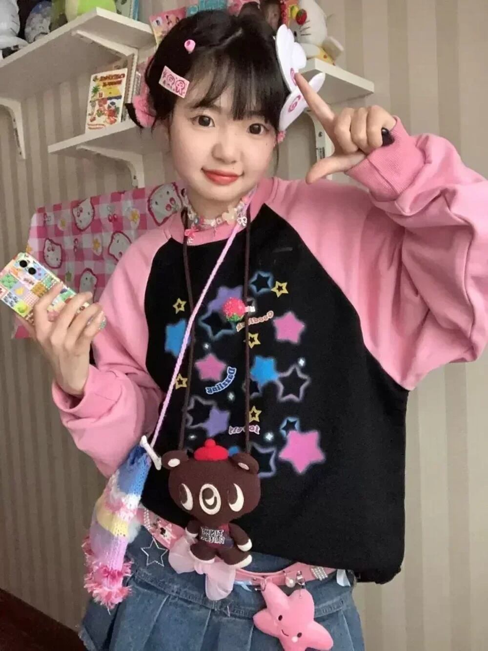Adagirl-女性のための特大の星のグラフィックパーカー、美的lanスリーブのスウェットシャツ、原宿トップス、カワイイ服、y2k、e-girl、カワイイ パーカー ジャージ y2k T240908165736_02