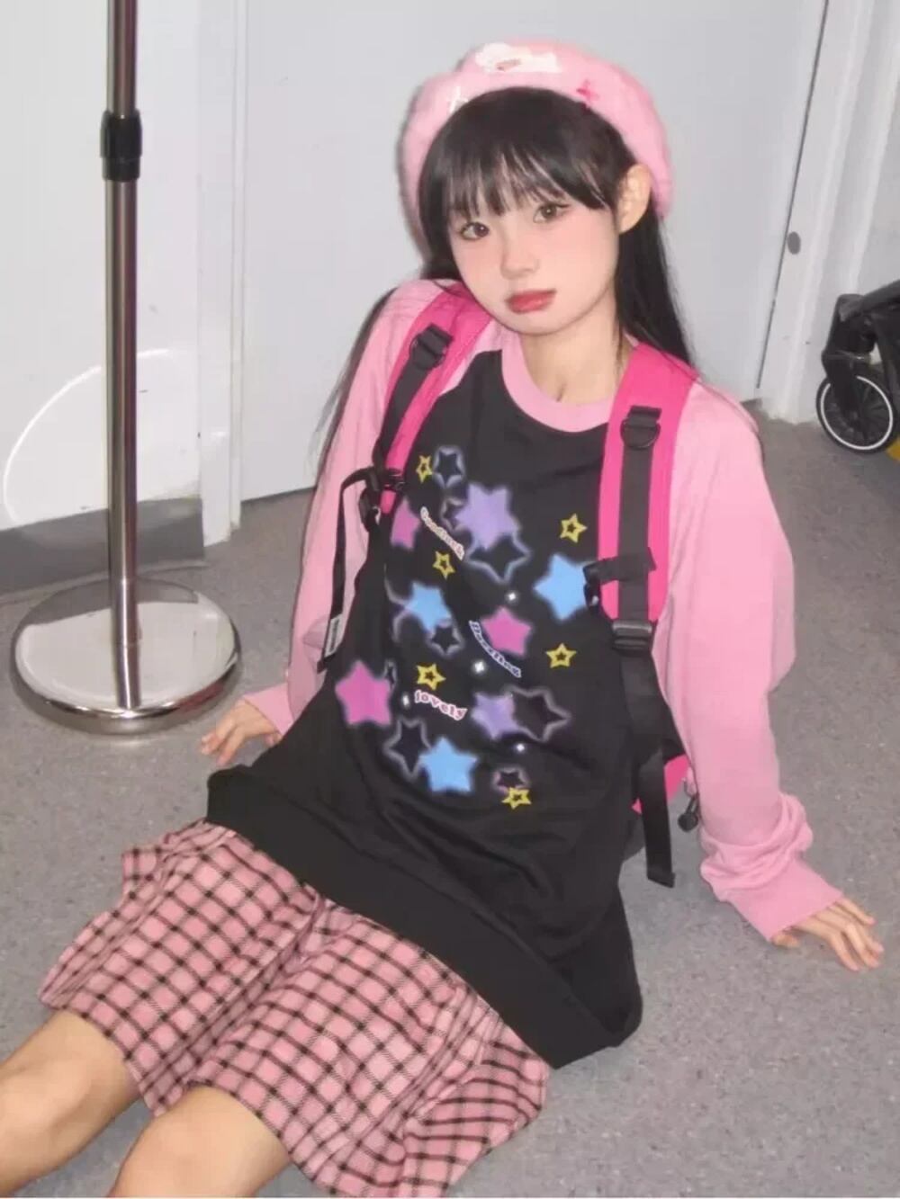 Adagirl-女性のための特大の星のグラフィックパーカー、美的lanスリーブのスウェットシャツ、原宿トップス、カワイイ服、y2k、e-girl、カワイイ パーカー ジャージ y2k T240908165736_05