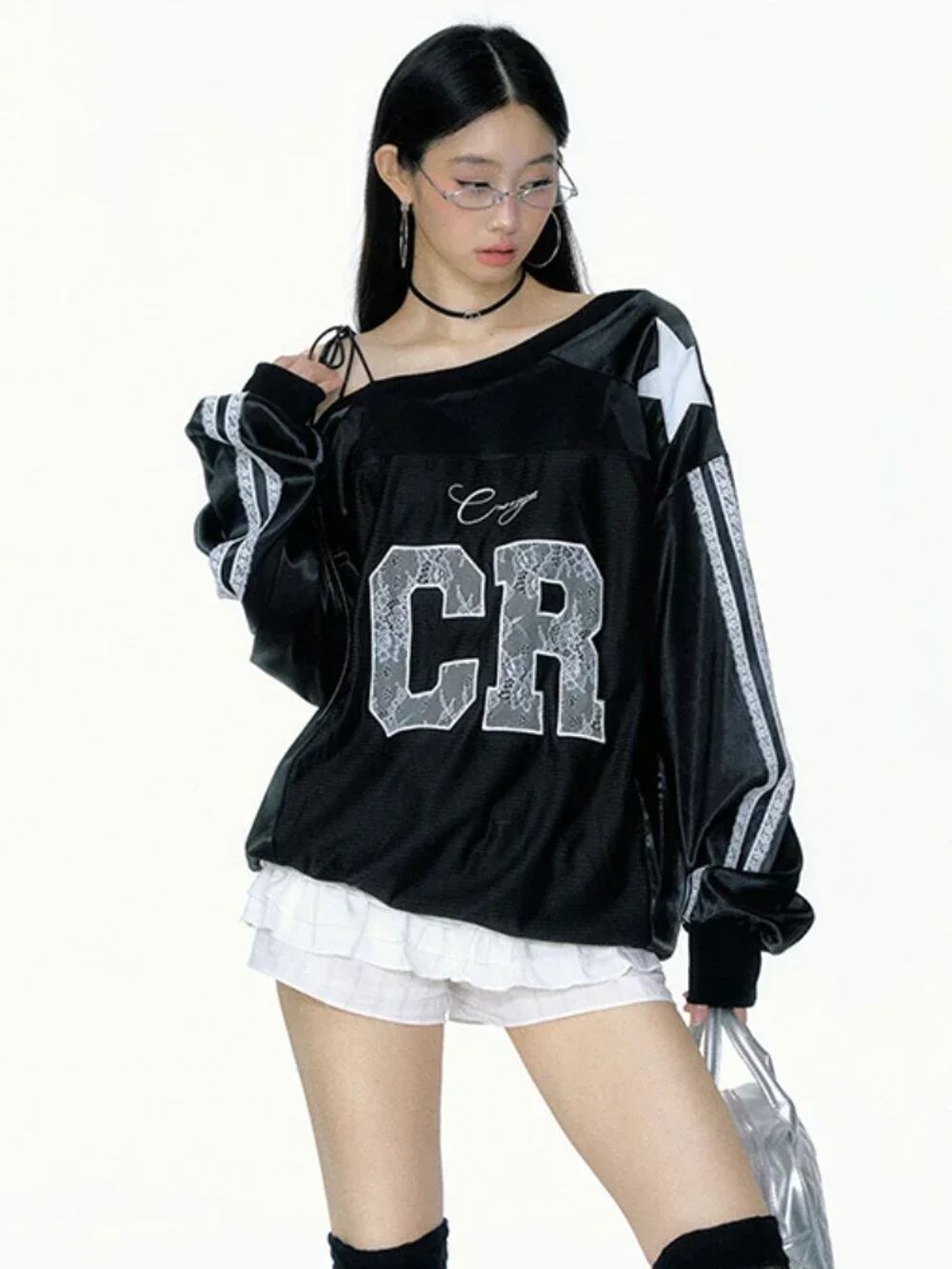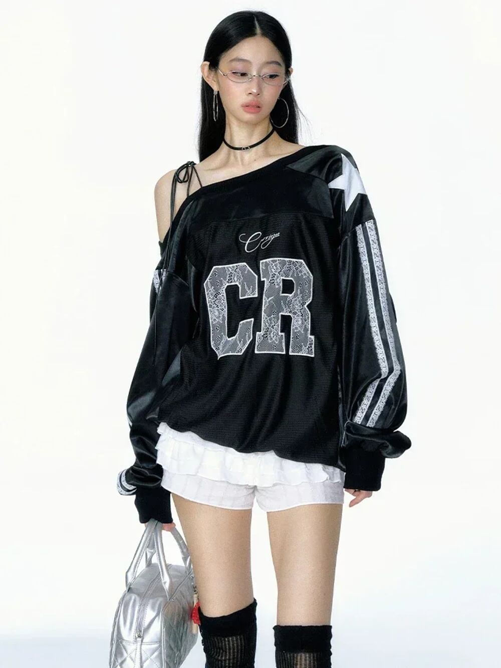 Deeptown-女性の特大レタープリントスウェットシャツ、ヴィンテージストリートウェア、セクシーなレース、裸の肩、スポーツトップ、kpopジャージー、秋、y2k パーカー ジャージ y2k T240908165859_02