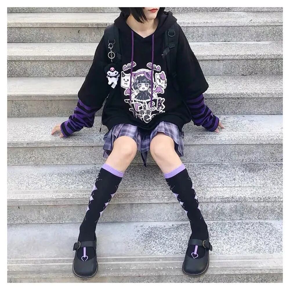 レディース漫画パーカー,婦人服,ロリータ,アニメ,長袖フード付きスウェットシャツ,原宿,グランジトップ パーカー ジャージ y2k T240908165921_01