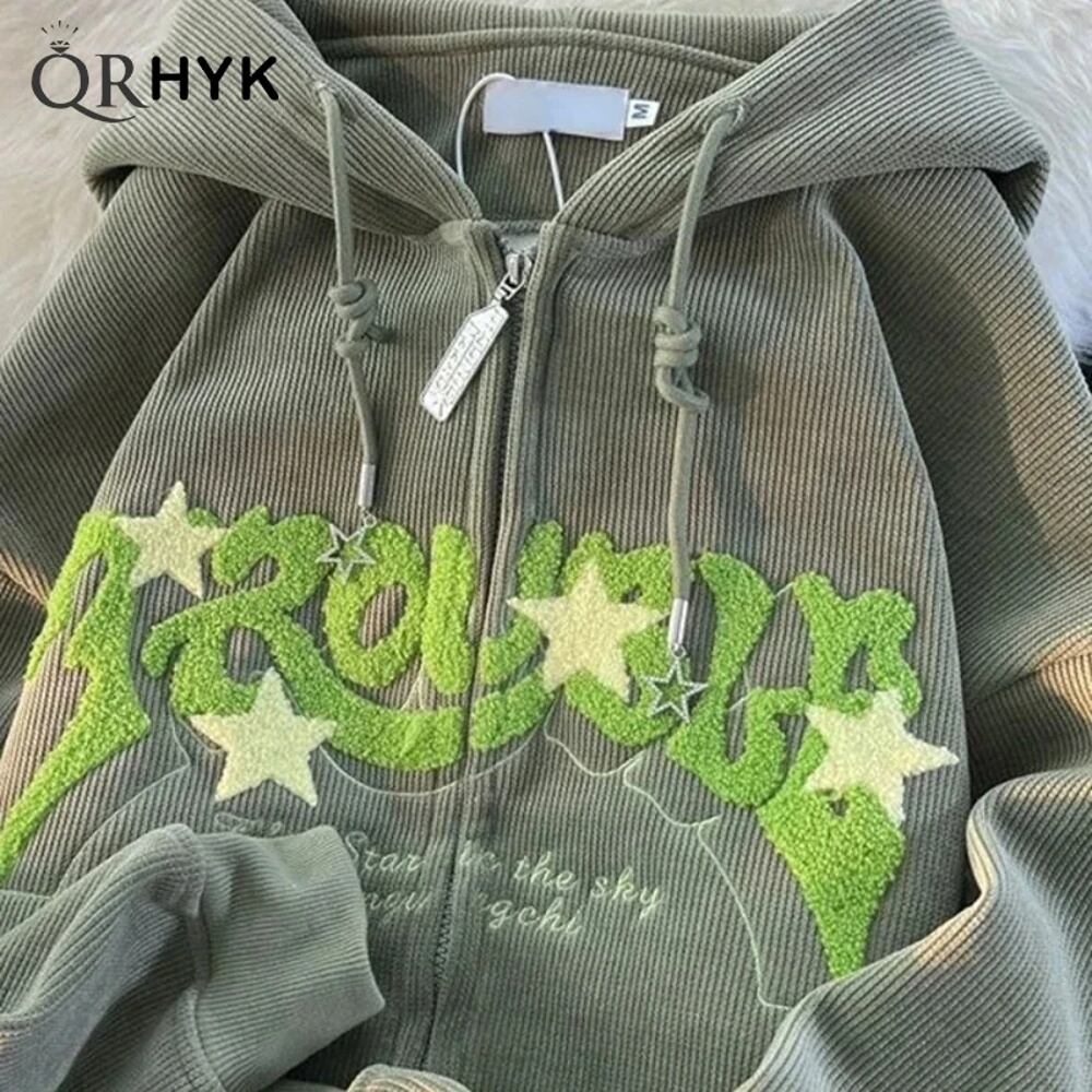 女性のレトロな刺embroideryパーカー、ジッパーアップ、長袖、ルーズジャケット、カジュアルコート、ポケット、フード付きスウェットシャツ、秋、冬、y2k パーカー ジャージ y2k T240908165952_02