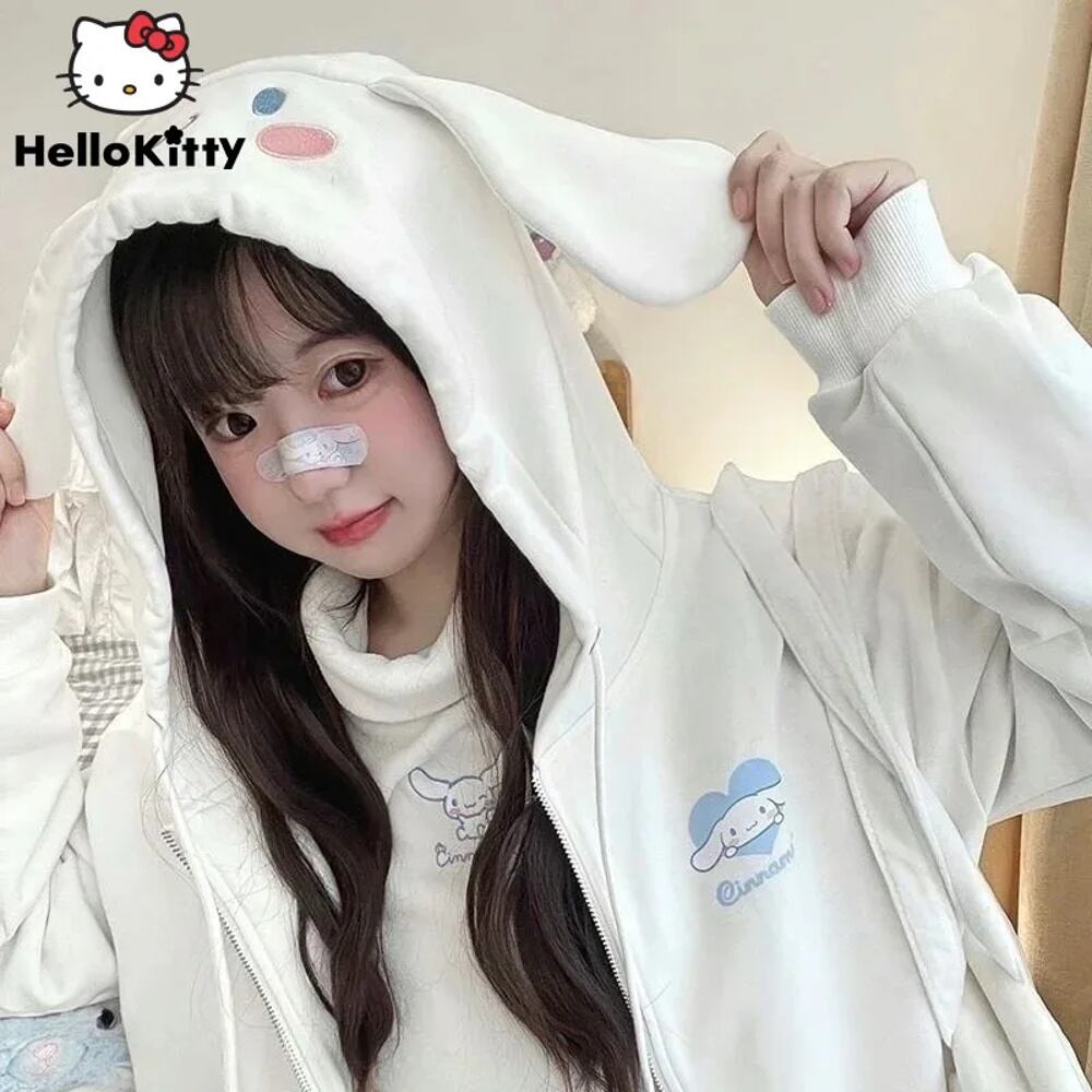 サンリオクロミシンナモロールメロディー女性用パーカー、カワイイスウィートジッパートップス、薄いコットンフード付きスウェットシャツ、y2k服 パーカー ジャージ y2k T240908170144_01