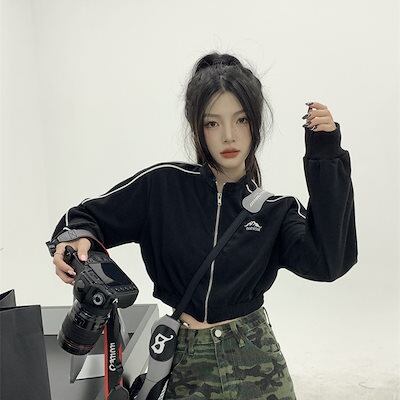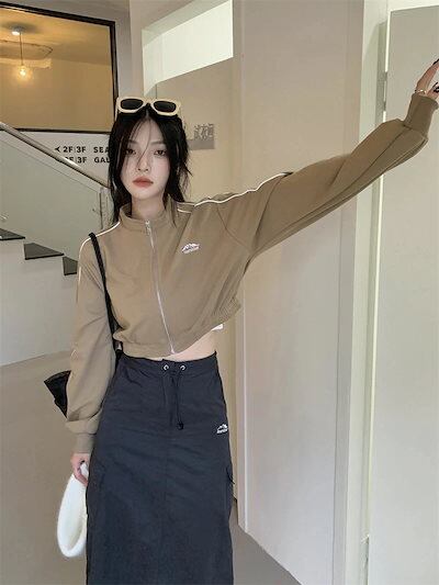 2024 秋 韓国 かわいい レディース アウター スポーティー ブルゾン リラックス お出かけ アウター 長袖セクシートップスネックサイド冬カジュアルファッション系お出かけフル丈トラック