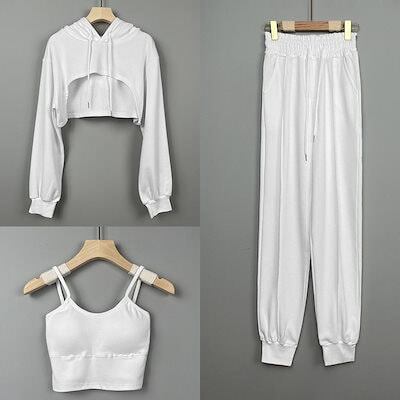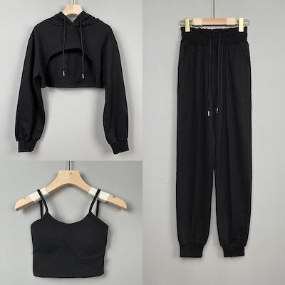 初春 3点セット スウェット パーカー セットアップ トレーナー 運動 韓国 かわいい レディース 無地長袖アウターレトロセット上下フーディーハーフサイズ丈トップス春カジュアルスポーツファッション系