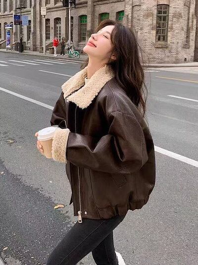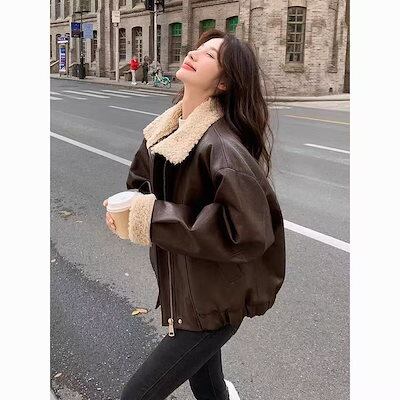 ライダースジャケット裏起毛 冬アウター ゆったり ショート pu レザージャケット 韓国ファッション トップス 革ジャンレディース 着痩せ コート裏起毛ファッションジャケット