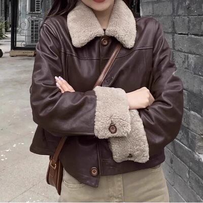 ライダースジャケット裏起毛 冬アウター ゆったり ショート pu レザージャケット 韓国ファッション 流行り アウタートップス ジャンレディース 着痩せ 高級感コート裏起毛ファッションジャケット