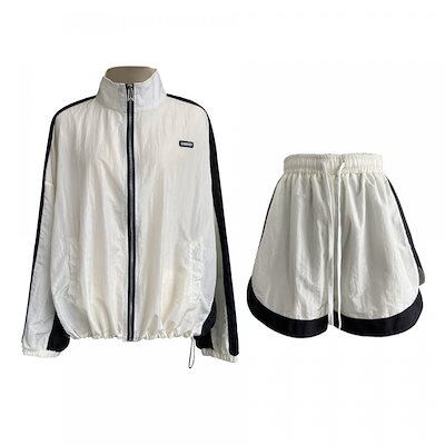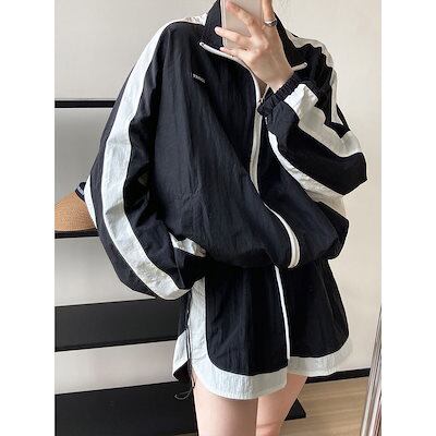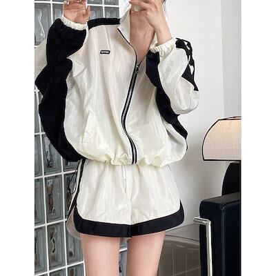 秋服楽ちんセットアップ上下2点セット 薄 日焼け止め 韓国ファッション ルームウェア セットアップ 長袖+ショートパンツ セットアップ レディース カジュアル 流行り