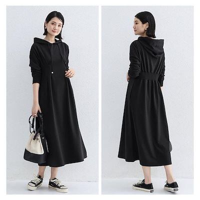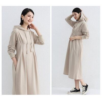 新品 大人気 ワンピース Aライン パーカーワンピース レディース 秋春 長袖 暖かい あったか フーディー 着痩せ ロング丈 細身 綿混