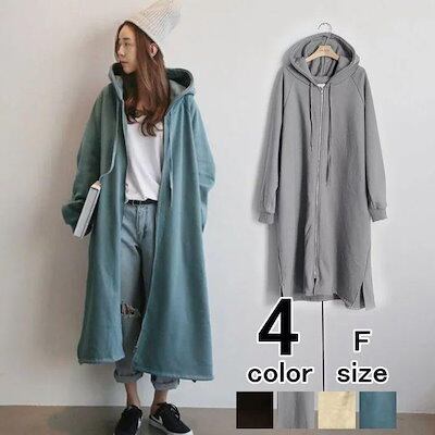 ロングパーカー 裏起毛 厚手 パーカー ロング丈 無地 パーカーワンピ ワンピース 長袖 ジップアップ トレーナー 体型カバー レディース 不可おうちコーデ