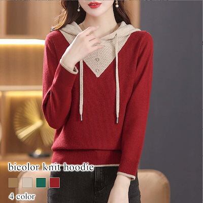 パーカー レディース バイカラーニットパーカー 冬 あったか コーデ 秋 ジャケット オーバーサイズ ジップ ロゴ 韓国 肌着 春 大きいサイズ 大きめ ブランド おしゃれ 人気 長袖 きれいめ グレ