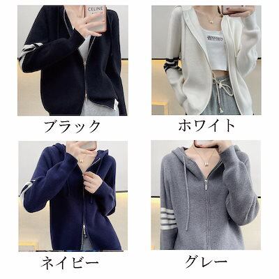 パーカー レディース ラインジップニットパーカー かわいい 肌着 厚手 オーバーサイズ 大きいサイズ 人気 暖かい 春 秋 長袖 おしゃれ ブランド 大きめ ロング 軽量 ジャケット ジップ トレーナ