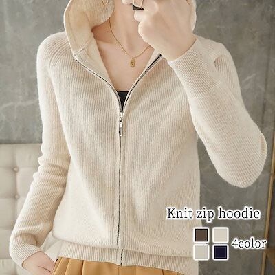 パーカー レディース ニットジップパーカー オーバーサイズ 長袖 ロング あったか ロゴ トレーナー 人気 大きめ 冬 きれいめ かわいい グレー スウェット ブランド 軽量 コーデ 春 秋 ジップ