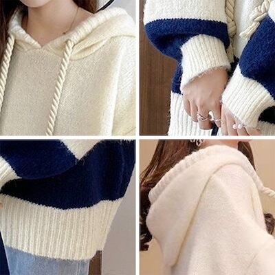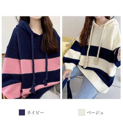 パーカー レディース ルーズボーダーニットパーカー 冬 あったか コーデ 秋 ジャケット オーバーサイズ ジップ ロゴ 韓国 肌着 春 大きいサイズ 大きめ ブランド おしゃれ 人気 長袖 きれいめ
